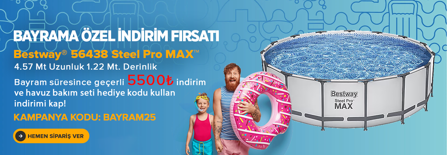 Bestway 561FM Steel Pro MAX Prefabrik Aile Havuzu 610x132cm Örtü+Merdiven+Filtre Set