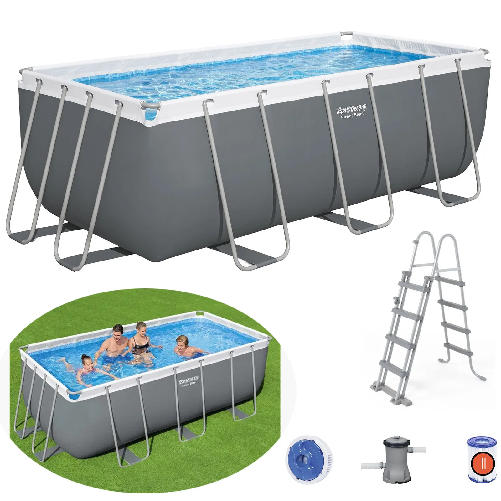 Teslimat seti, su arıtma ve sirkülasyon için 2006 l/saat kapasiteli filtre pompası, kartuş, havuza bağlantı için gerekli hortumlar ve kelepçeler, merdiven ve kimyasallar için şamandıra dispenserinden oluşmaktadır.