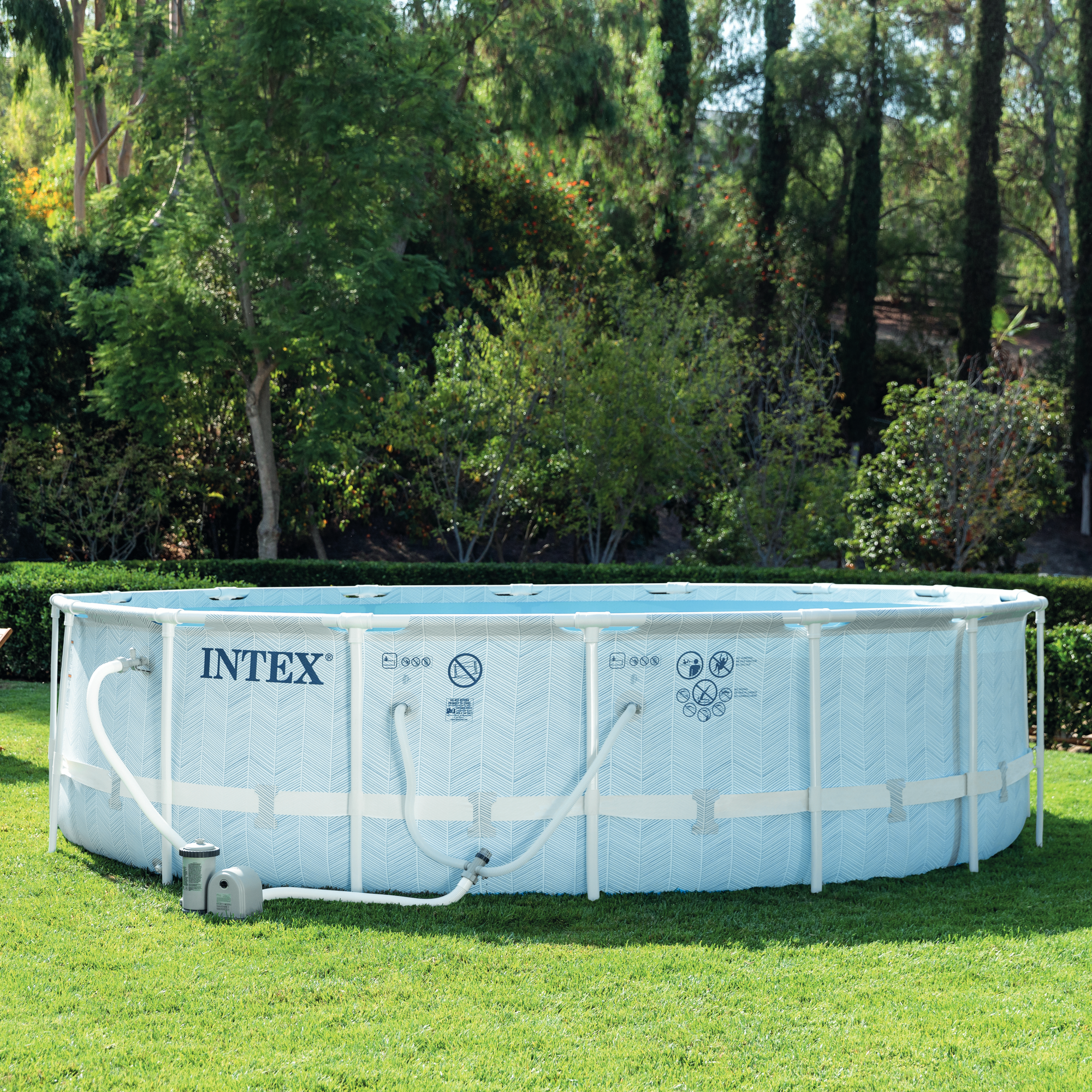 Yeni Chevron Prism Frame™ havuzlarımız bahçenizin şık bir parçası olmak üzere tasarlanmıştır. Mavi renkteki çarpıcı chevron deseni dış mekanınıza modern bir dokunuş katacaktır. Dayanıklı 3 katmanlı PVC malzemeden üretilmiştir. Yaz sıcağında serinlemek için ideal bir havuzdur.